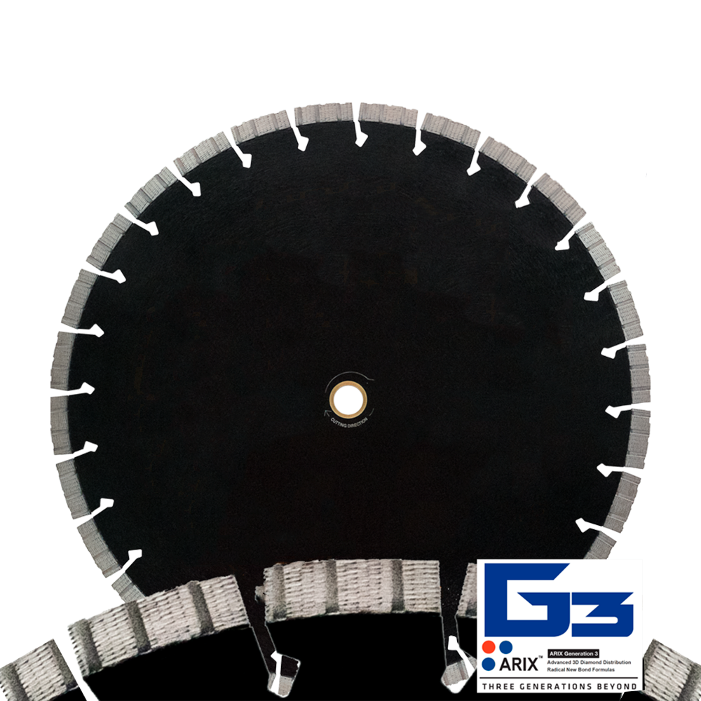 The perfect solution for reliable performance on brick, concrete, and more types of stone. The Diteq Brute 18” diamond blade’s segmented design uses ARIX diamond arrangement technology for unparalleled performance with faster, more precise cuts. It’s a longer-use blade that won’t wear as unevenly or quickly as much of the competition. Use with wet or dry low-HP walk-behind saws, high-speed saws, masonry saws. 18” blade diameter. Total measurements: 18" x .0.125 X 1". Color: Black, silver, and orange. Find diamond saw blades in all sizes, blades for grinders, and more road and construction equipment at 95TSS.