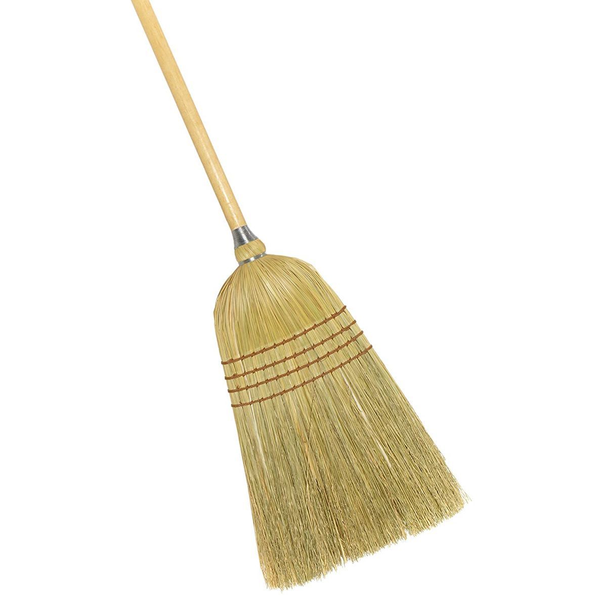 BROOM CORN INDUSTRIAL HOUSE. Blended Corn Broom works on light and medium sweeps. It comes with a corn/yucca mix and 4 sewn threads. It's a heavy-duty warehouse sweeper with strong synthetic seams and metal retaining straps. This broom offers excellent durability. The high bristle count extends its life and makes it easier to use. It has 20 percent corn fiber and 80 percent rattan bristles.