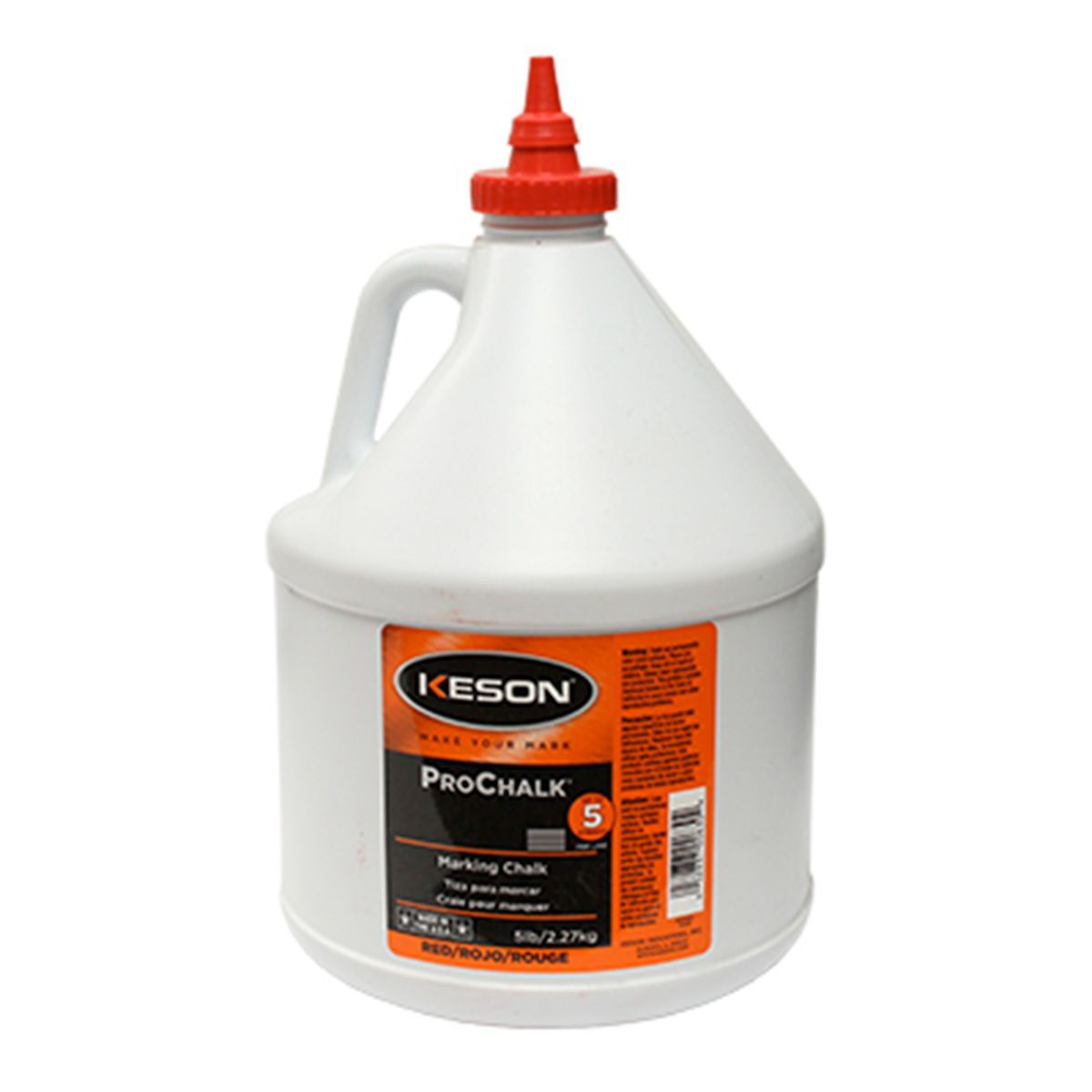 CHALK REFILL POWDERED 5LB. RED. This product is a Keson brand marking chalk refill that can be used on chalk line spools to produce water and weather resistant semi-permanent lines that stick and bump for a long time but eventually wear out. The product can provide up to 5 yield line strokes, plus large flow to make coil filling much easier. Its outdoor applications include, in other things, roofing, concrete layouts and metal fabrication.
