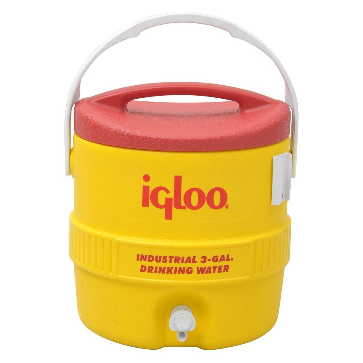 Tough, insulated polyethylene cooler for all-day hydration. Durable, reinforced swing handle is easy to transport. Push-button spigot is easy to operate - even with gloves on. Seal debris and dust out of your crew’s water supply with a pressure-fit lid that keeps fluid clean and prevents leaks. High-visibility yellow and red colors with UV inhibitors that prevent fading. Can maintain ice for three days at 90 degrees Fahrenheit. Capacity: Three gallons. Meets OSHA requirements for labelled on-the-job drinking water. Find plastic coolers in larger sizes, as well as safety supplies and top-quality tools, at 95TSS.