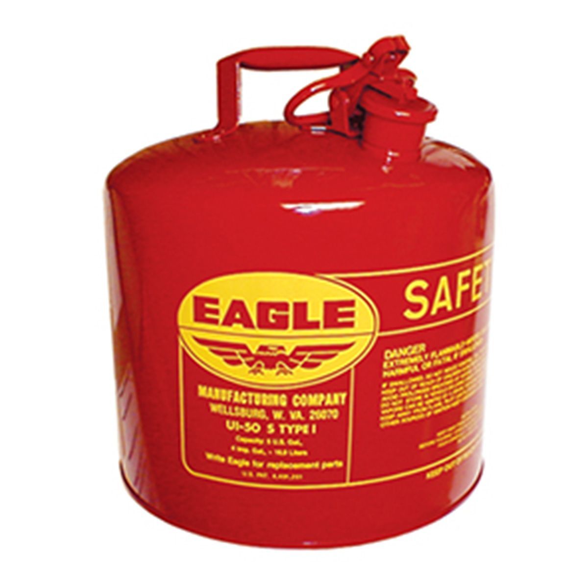 GAS CAN SAFETY RED 5-GAL METAL. The gallon red metal gas can is a durable and long-lasting gas can. It is made from 24 gauge hot-dip galvanized steel, making it rust resistant. It has a safety nozzle that prevents overflowing or spilling when discharging the gas. In addition, this gas can holds up to 5 gallons of fuel.