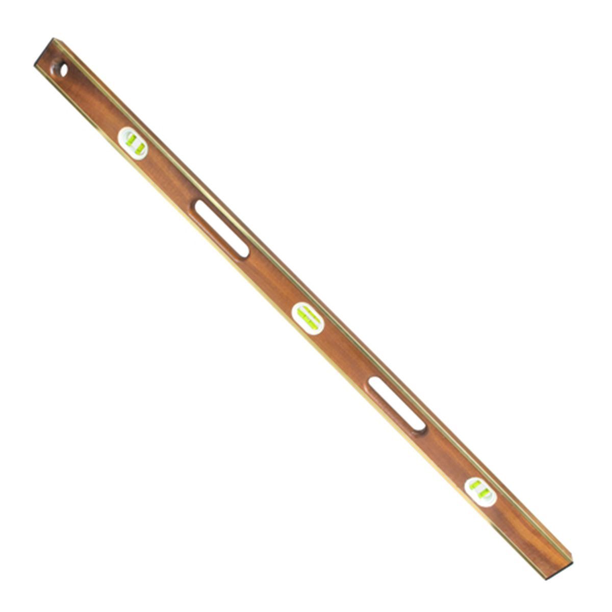 LEVEL BRASS BOUND 48" MAHOGANY. This professional grade of brass-bound mahogany from Kraft Tools has been produced with the finest selection of mahogany wood, thus making it the best choice among masons. It has a beautiful smooth finish and is bound in brass for added strength and smoothness. It also has three sets of two solid bottles that include plumb levels and multi-position leveling levels. In addition, its glass lenses that protect the vials ensure a longer shelf life at the level.