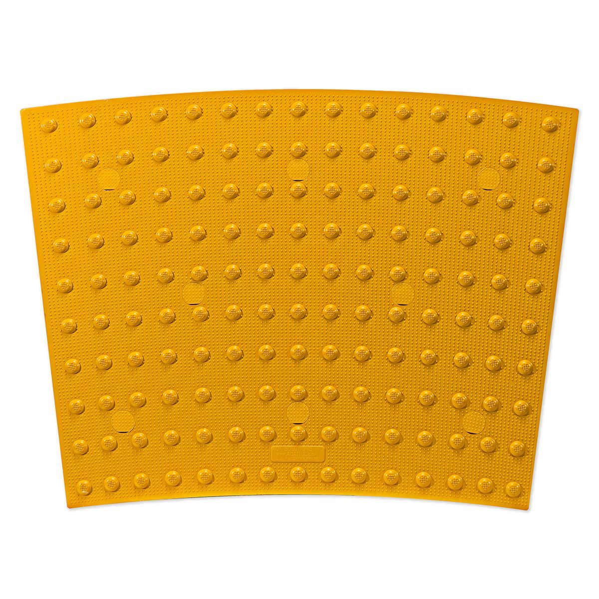 MAT ADA RADIUS 24X33.5 YELLOW. This replaceable paver tile is used on new construction or new curb ramps, helping to press freshly poured concrete into place. It is made of an UV stable carbon composite and homogeneous glass with truncated cups for better durability.