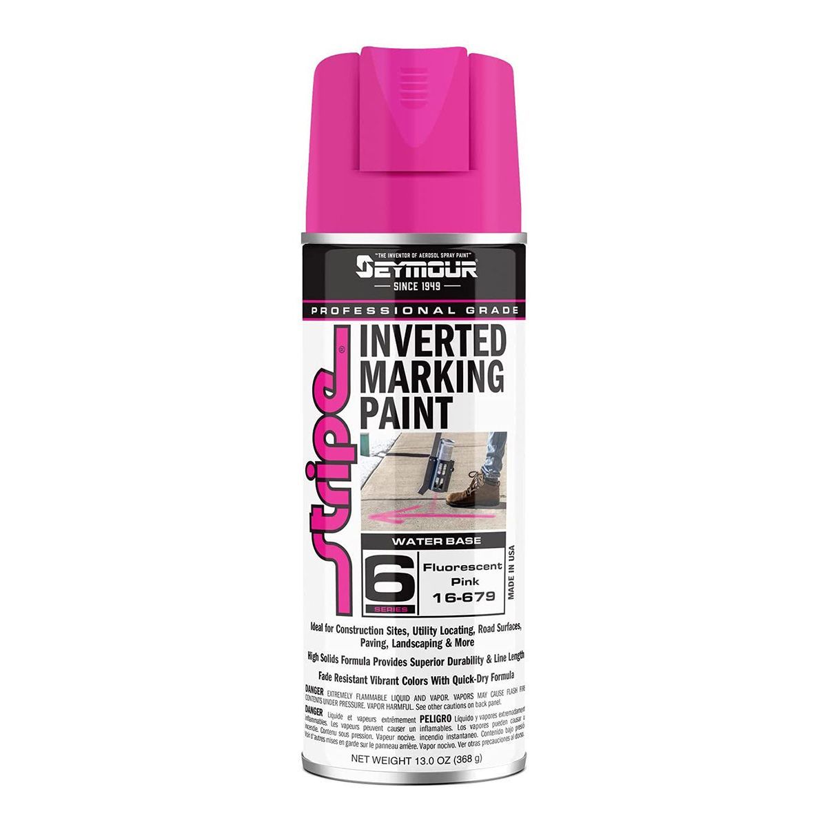 PAINT FLO PINK STRIPE 14oz. Stripe Marking Paint, Solvent-Based, Water-Based, Inverted Tip Marker, 14 oz, Fluorescent Pink, Seymour