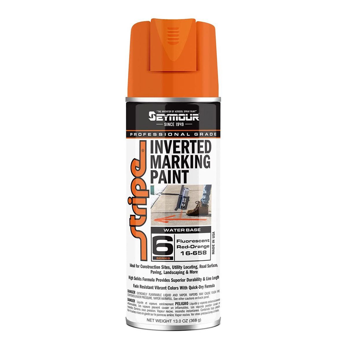 PAINT FLO REDORANGE STRIPE 14oz. Stripe Marking Paint, Water-Based, Inverted Tip Marker, 14 oz, Red/fluorescent Orange, Seymour