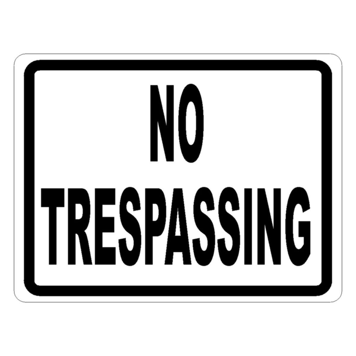 SIGN NO TRESPASSING 18x12 .040 ALUM R/W. This sign is made of 63 mil thick rust proof aluminum. It has laminated protection, which guarantees protection from the weather and abuse to preserve a new appearance. Furthermore, the laminate is transparent and resists chemicals, ultraviolet rays, water and abrasion.