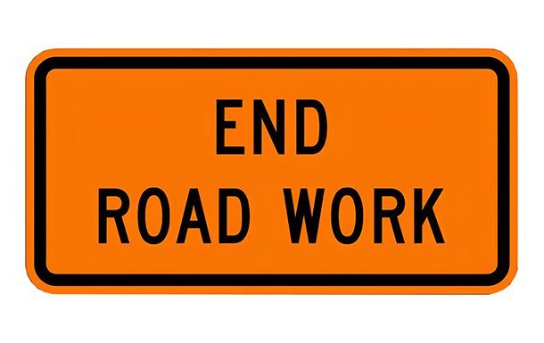 Drivers adapt to special conditions like reduced speed limits and altered traffic patterns when passing through a work zone. Installing an 'end road work' road sign near work zone boundaries helps prepare drivers to resume normal driving patterns. This roll-up option is appropriate for use after construction zones and within transitional areas of all types.