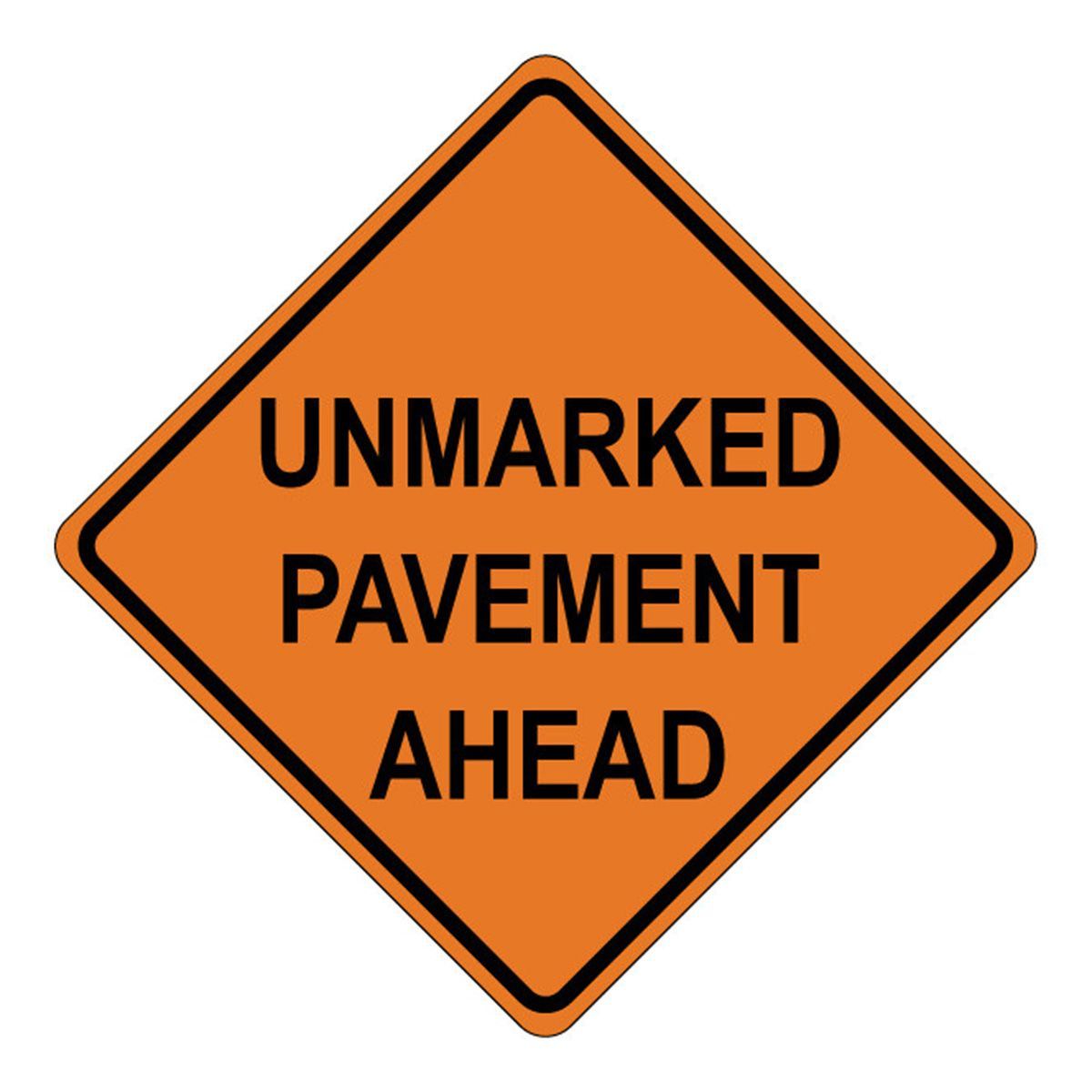 SIGN UNMARKED PAVEMENT 48X48 ACM B\O DG W8-12(1). This square-shaped reflective sign is 48 inches long and has two centered holes (top and bottom) that measure 3/8 inches. Made from aluminum meets MUTCD specifications.