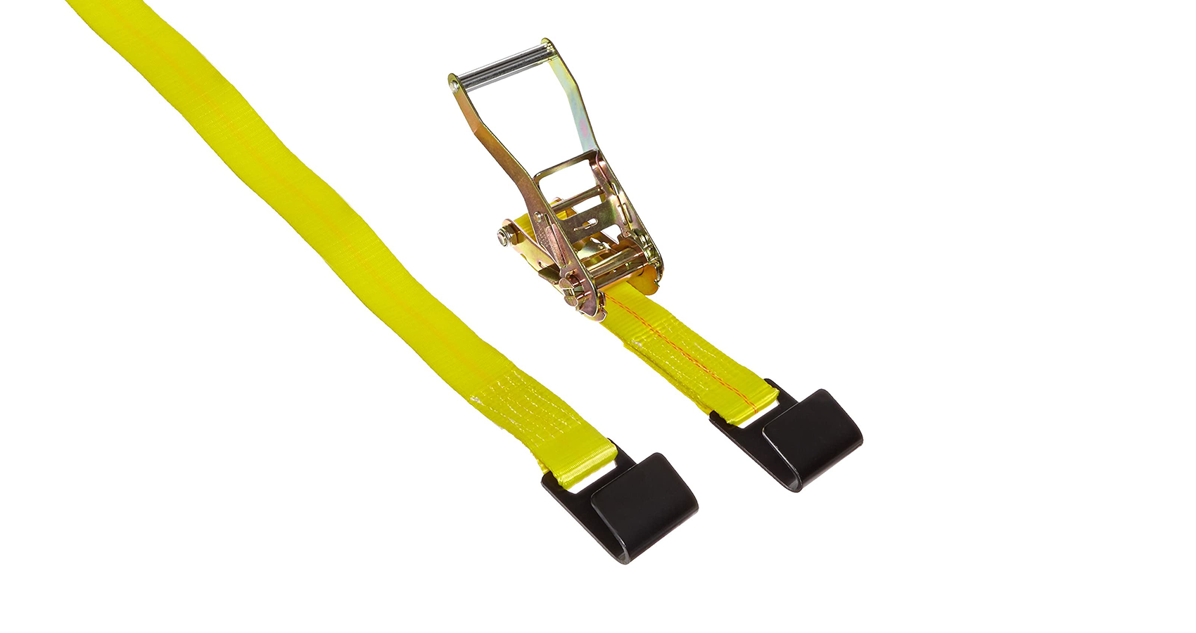 STRAP TIE DOWN NYLON 2"x27' W\ RATCHET & FLAT HOOKS. This ratchet securely ties loads regardless of height, shape and strength easier and faster. Resistant, due to the material that is manufactured, polyester. It is also lightweight and easy to place on any load. Don't forget to always protect your web from sharp or abrasive surfaces. An important note, this product must not be used for lifting or towing.
