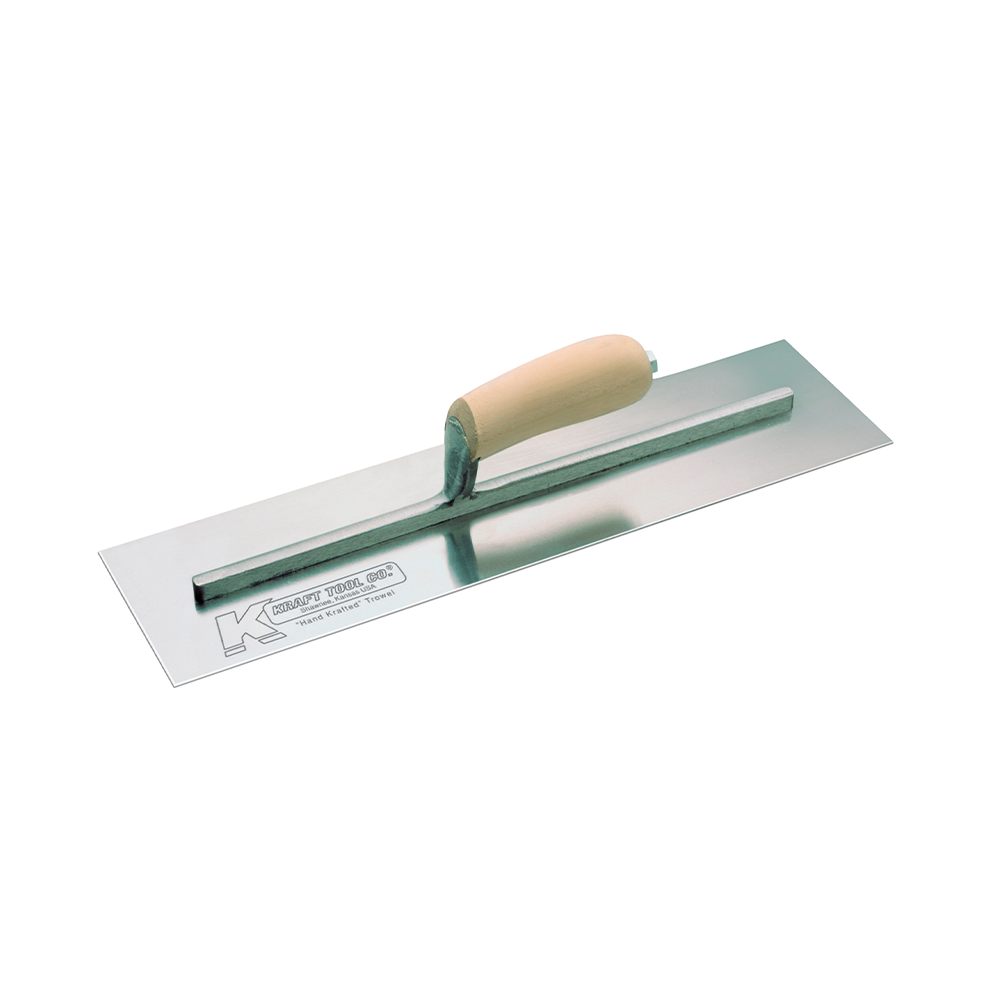Kraft CF-222C 16" x 4" Finishing Trowel is a professional quality carbon steel concrete trowel finishing. Made in the United States, it has a high-strength, lightweight aluminum mounting and its flat trowel has a smooth wooden handle, which provides a comfortable grip. Its square blade, in turn, guarantees the success of the work until the corners. Its oversized toe rivet provides extra strength when applying pressure during finishing work. In addition, the contoured shape of its handle reduces fatigue, also increasing its accuracy. It makes this fresco trowel perfect for use on small and large projects.