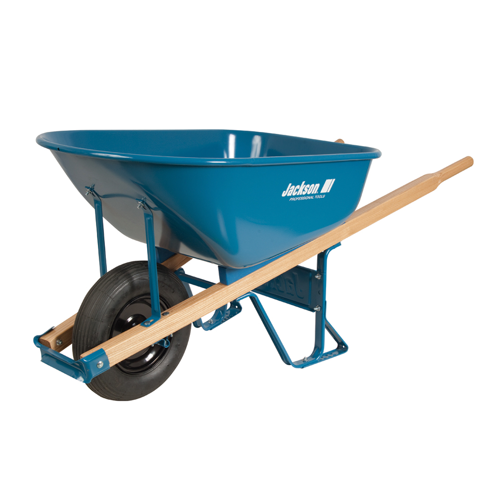 WHEELBARROW FLAT-FREE 6CUFT M6. Jackson six-handle barrows feature a professional grade steel undercarriage with Jackson locks and leg stabilizers that ensure stability when carrying heavy loads. Its sturdy 16-gauge handles stabilize the load when maneuvering back and forth and when being dumped from the stroller tray.